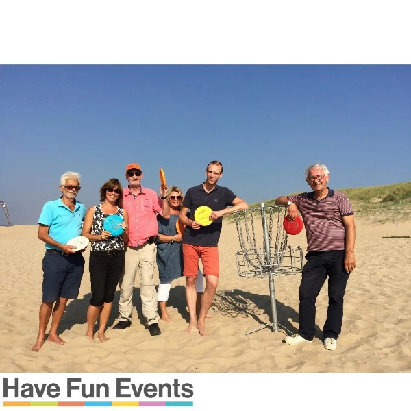 Discgolf groepsuitje organiseren? Bij het Discgolf worden de deelnemers in teams verdeeld. Ieder team loopt het afwisselende discgolfparcours met verschillende hindernissen zoals bijvoorbeeld boompartijen, overbruggingen van water en heuvels. De discgolf-activiteit start met het oefenen van de verschillende worpen. Vervolgens krijgen de deelnemers een scoreformulier, pen en goed gevulde kinderwagen met drankjes, chips koekjes en andere lekkernijen uitegereikt en gaan zij van start op het discgolfparcours. Een leuk en sociaal groepsuitje waar de deelnemers tijdens het spel gezellig bij kunnen kletsen!
