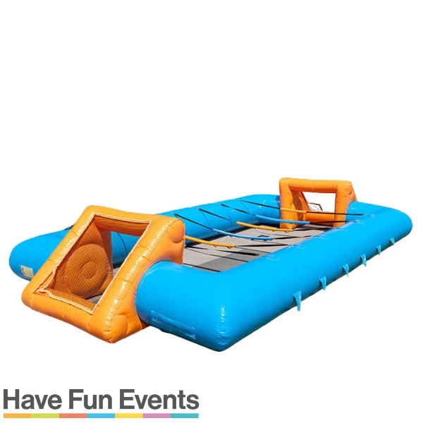 Dit leuke, sportieve levend tafelvoetbalspel is gebaseerd op het tafelvoetbalspel, maar het leuke aan dit spel is dat de spelers de levende voetballers zijn! Je zit met een handvat vast aan de “stangen” binnen de boarding. Door het unieke schuifsysteem kun je gemakkelijk heen en weer schuiven. Door de hoge boarding zal de bal niet zo snel buiten het veld worden getrapt. Scoor jij met je team de meeste doelpunten.