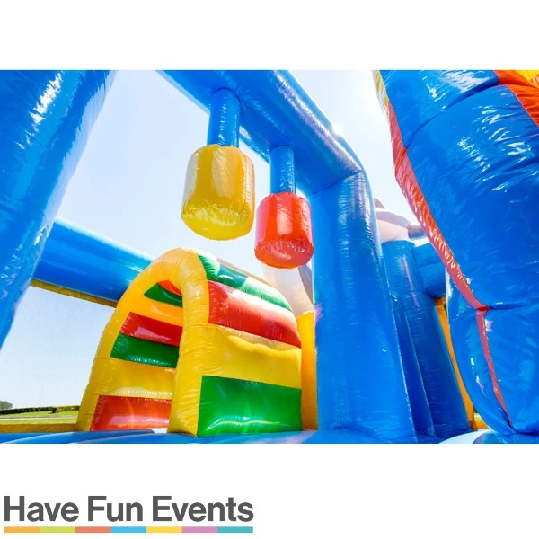 Als je het springkussen nadert, word je begroet door de aanblik van een torenhoge golf, bevroren in de tijd terwijl hij tegen de kust botst. Maar als je beter kijkt, zul je zien dat dit geen gewone golf is: het is de toegang tot een wateravontuur dat zeker een plons zal maken.