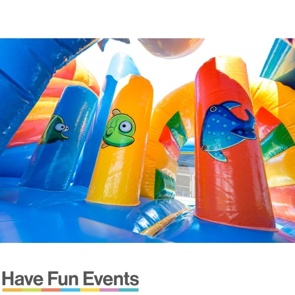 Terwijl je het springkussen verkent, ontdek je verborgen grotten en geheime grotten, die allemaal nieuwe mogelijkheden bieden voor avontuur en ontdekking. Race van glijbanen die verborgen zijn tussen wuivende zeekelp, navigeer door kronkelende tunnels omzoomd met kleurrijk koraal, of stuiter gewoon naar hartenlust te midden van de bezienswaardigheden en geluiden van de oceaan.