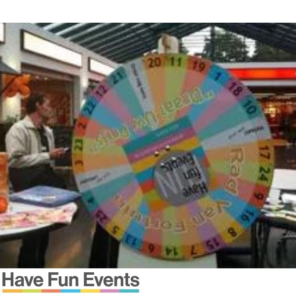 Wilt u het rad van Fortuin huren of wel wel rad van avontuur genoemd huren? U kunt het rad van fortuin bij Have Fun Events attractieverhuur in de Bollenstreek huren. Op het rad van avontuur staan 25 getallen. Daarnaast om het rad nog leuker te maken vakjes met 'helaas geen prijs' en 'draai nog een keer'. Wij adviseren u graag over de mogelijkheden om het rad van fortuin te gebruiken voor uw activiteit. Wij wensen u veel plezier met de huur van het draairad!