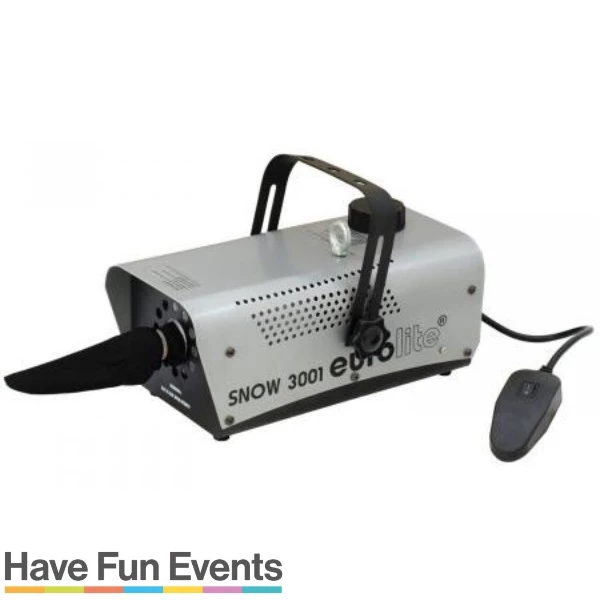 Met de Eurolite Snow 3001 sneeuwmachine huur je een sneeuwmachine die ideaal is voor bijvoorbeeld een après-skifeest of een evenement met een winter en/of kerst thema. De sneeuwmachine is inclusief bekabelde afstandsbediening en sneeuwvloeistof.